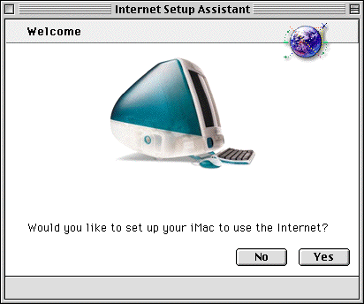 Here is a fun walk-through for getting your Internet Setup Assistant-equipped computer to connect to GDN.Net. To configure your iMac for use with our Internet service, simply fill in the blanks with the information for our service that will be provided above each screen shot.