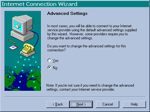 You will not need to change any advanced settings for GDN.Net. Simply select No and click Next. |
